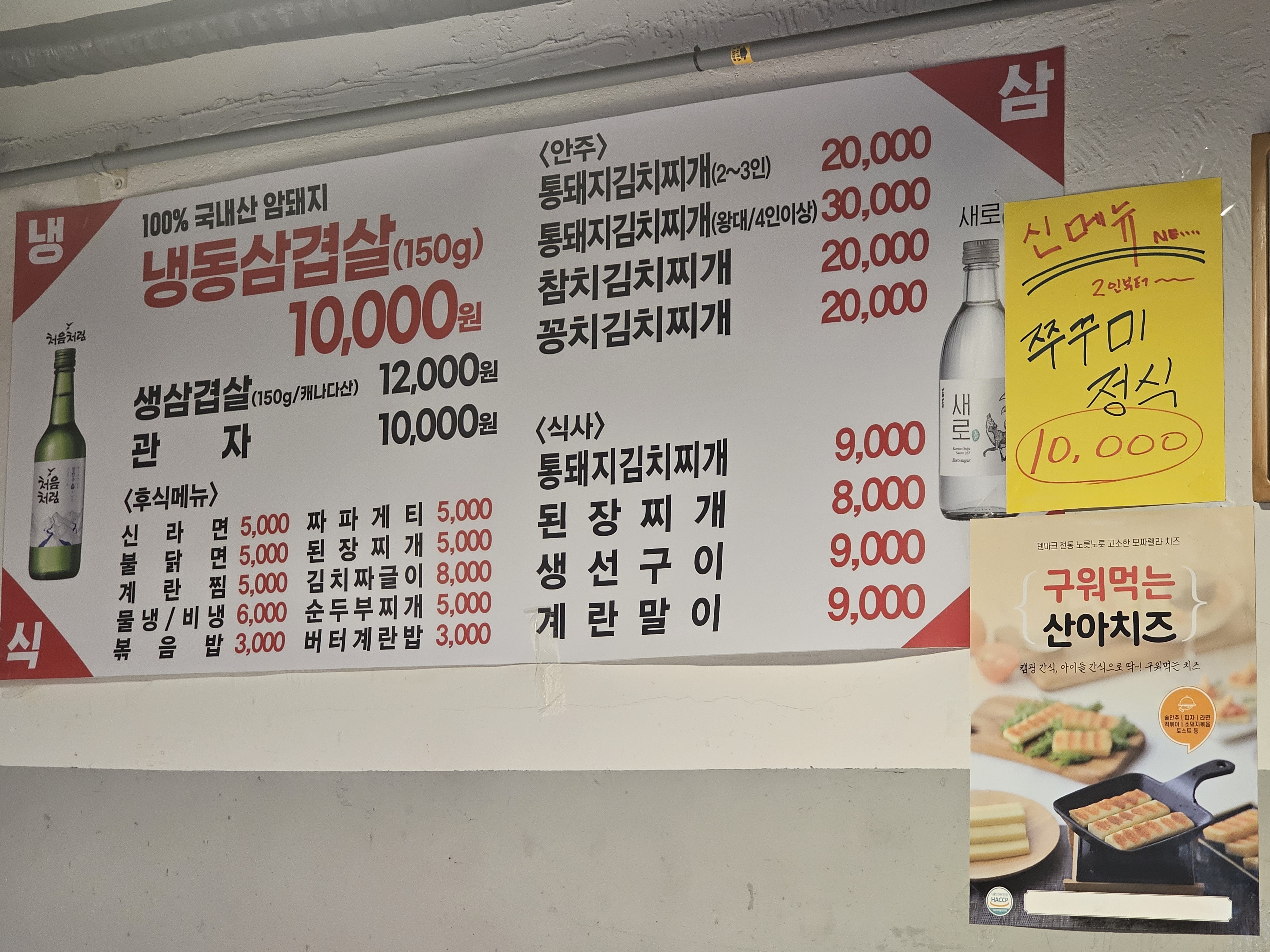 냉삼식당 약수점, 이름 그대로 냉동삼겹살을 전문으로 하는 맛집이다. 요즘 고깃값이 부담스러운데, 여기는 150g에 단돈 10,000원이라니…! 진짜 현실적인 가격에 소주 한잔할 수 있는 곳이라 방문~~.