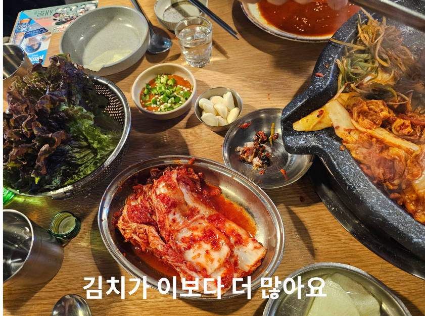 구워 먹는 신김치가 많아서 고기와 함께 먹기 좋음.