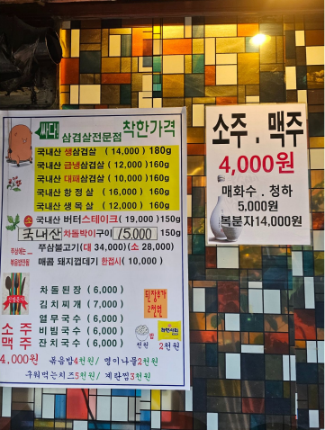 가게 외부에 게시된 메뉴판을 보고 깜짝 놀랐어요.